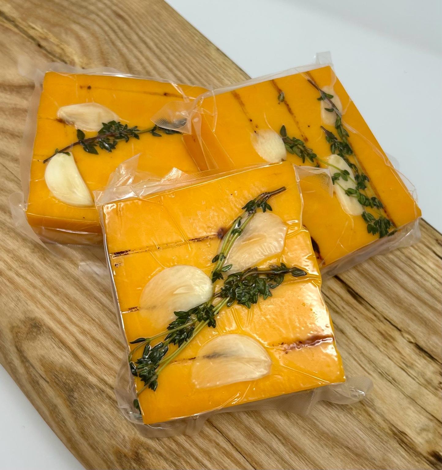 Rūkytas čederio sūris – tikras atradimas sūrio mylėtojams. Jį rūkom apelsinmedžio drožlėmis, kurios suteikia natūralaus dūmo aromatą, švelnų salstelėjusį poskonį ir išskirtinę gintarinę spalvą. Kiekvienas 200 g gabalėlis pagamintas rankomis, kruopščiai supakuotas ir dekoruotas – todėl puikiai tinka kaip dovana gurmanui ar akcentas šventiniam stalui.